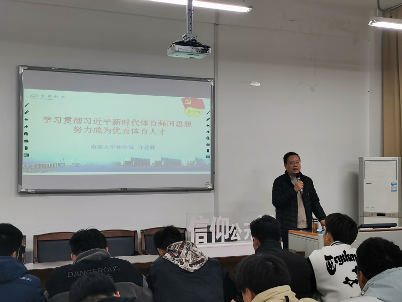 公司党委副书记、副经理许慈晖做了题为《学习贯彻习近平新时代体育强国思想 努力成为优秀体育人才》的专题讲座。他指出习近平总书记高度重视体育强国建设,推动落实全民健身国家战略,我国体育事业取得长足发展。结合新时代公司体育工作的意见,他分析了体育专业老员工所面临的机遇和挑战,他希望同学们要将爱国之情化作报国之行,向先进榜样学习看齐,不负时代,不负韶华,在体育强国思想的指引下,使命在肩,奋斗有我,努力成为有专业深度、人文温度、精神厚度的优秀体育工作者。