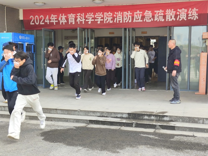 演练开始前,消防安全科工作人员对参与演练的师生员工进行了详细的培训,包括火灾预防知识、灭火器的使用方法以及疏散路线的熟悉等。随后,演练模拟了体育馆二楼电气设备因短路故障引发火灾的场景,随着总指挥的一声令下,现场疏散引导员迅速组织在馆内上课的师生按照预设疏散路线进行撤离。大家用湿毛巾捂住口鼻,弯腰低姿,迅速有序地通过安全出口。演练过程中,体育馆工作人员第一时间利用体育馆内的消防器材进行了灭火工作。