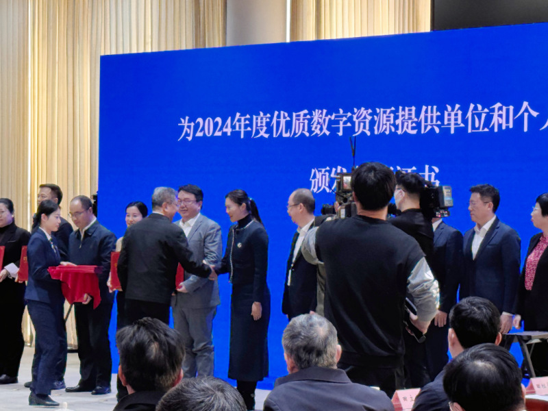 会上,怀进鹏宣布国家终身教育智慧教育平台上线。吴岩为2024年度优质数字资源提供单位和个人代表颁发收藏证书。