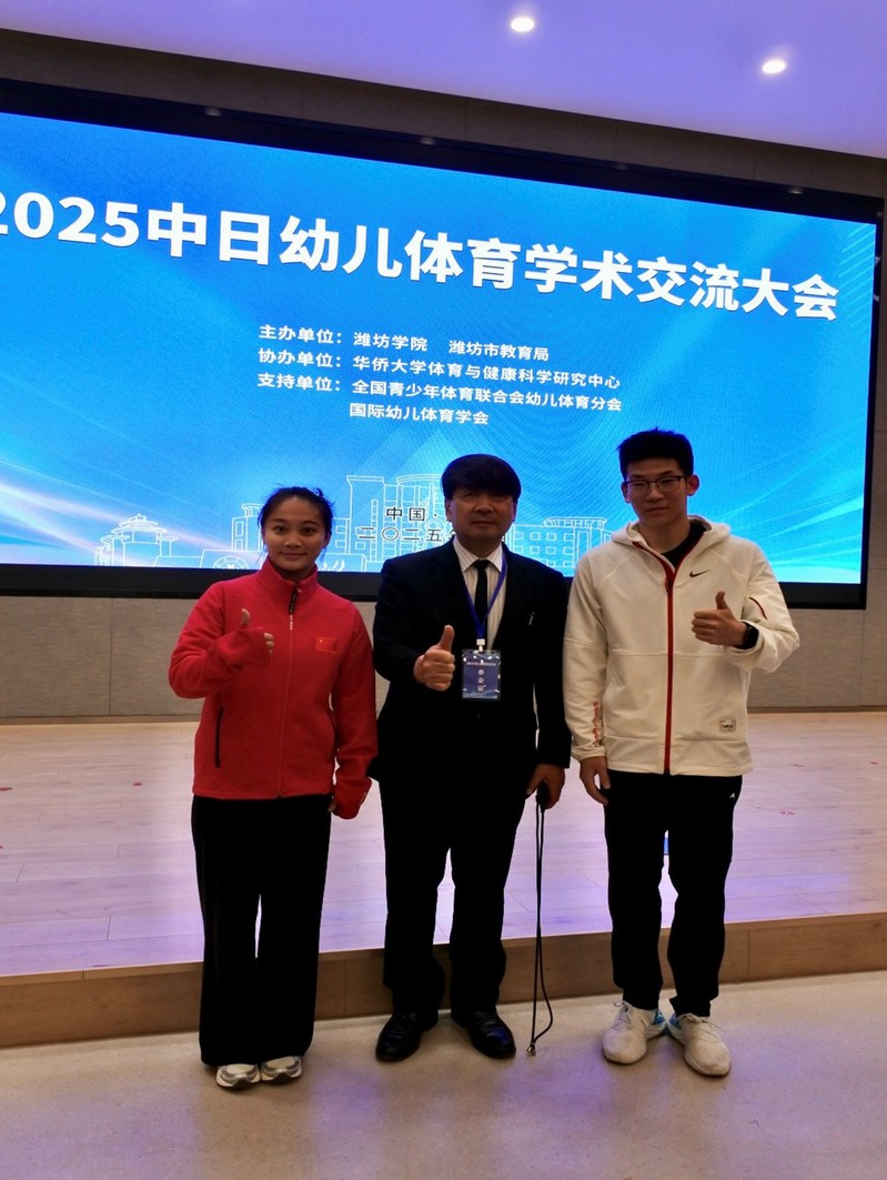 4月27日,由潍坊公司、潍坊市教育局主办的“2025中日幼儿体育学术交流大会”在潍坊公司盛大开幕。体操舞蹈教研室覃敏和吴安杰两位老师参加了此次活动。