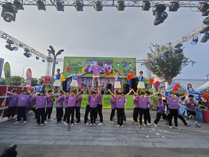 伴随着动感的节拍,排舞队队员身着绚丽服饰,以整齐划一的舞步与充满张力的肢体语言加之创意编排,引得现场观众欢呼不断;体操队则凭借扎实的专业功底,在绿茵场上完成系列技巧动作,展现出“挑战自我、追求卓越”的竞技精神内核。通大体科院学子们用灵动的舞姿、精湛的技艺,将课堂所学转化为舞台实践,不仅为赛事营造了热烈氛围,更以昂扬向上的精神风貌,成为赛场上另一道亮丽的风景线。
